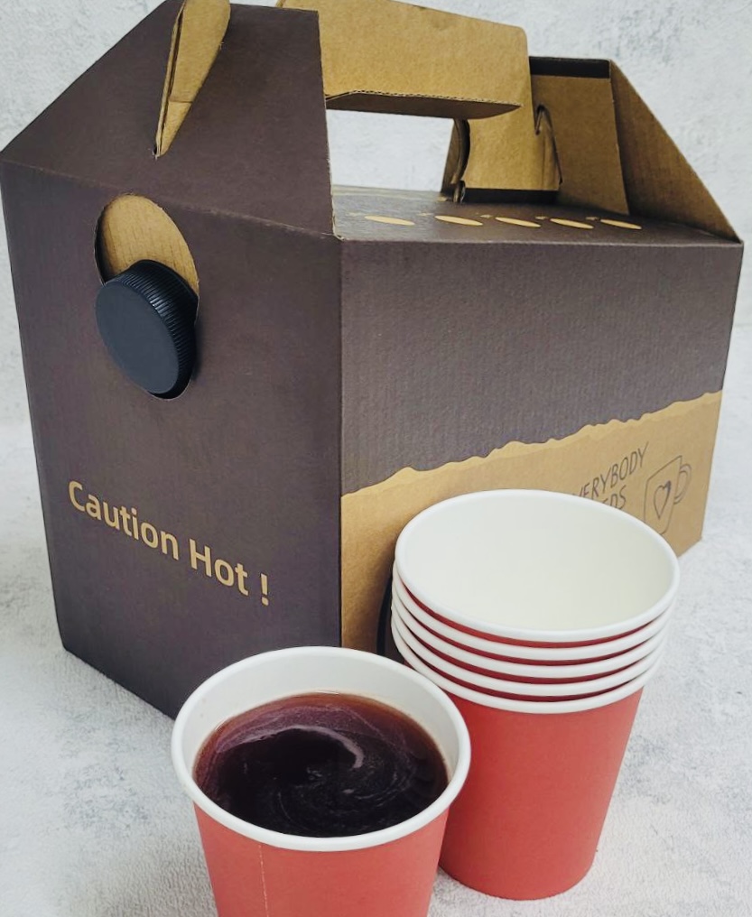 Глинтвейн безалкогольный на фруктовом соке в термоупаковке, в упаковку входит 10 порций по 200 мл. Термоупаковка поддерживает температуру в течение 1-1,5 часа. Напиток заливается перед доставкой.